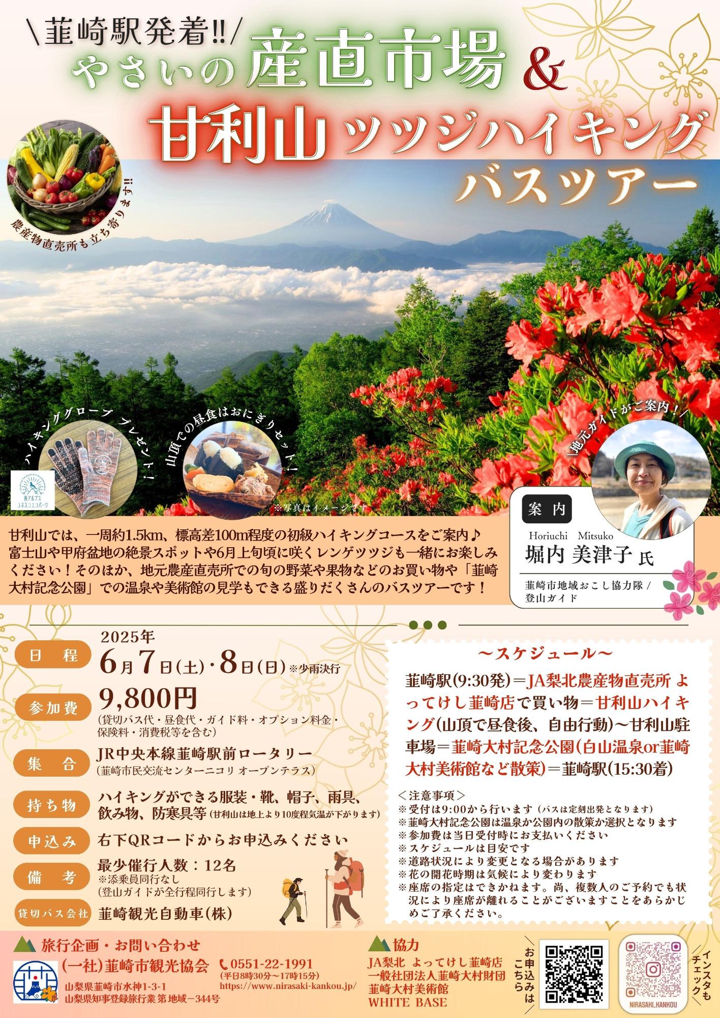 富士山や甲府盆地の絶景スポットや6月上旬~中旬に咲き誇るレンゲツツジも一緒にお楽しみください!